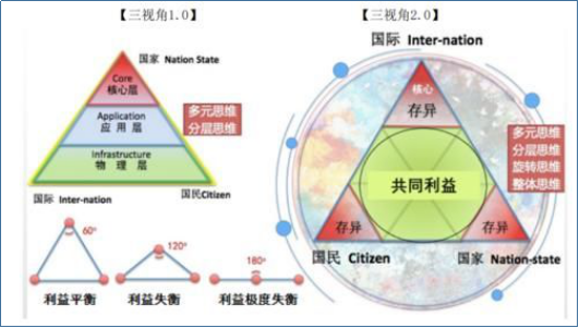 郝叶力的“三视角”理论从国家、国际、国民这三点出发,引出网络空间行为的三个边界,力求跳出单点迷思和二元对立,求同存异,站在网络空间命运共同体的维度,以整个人类世界俯瞰的视角,以多元思维、分层思维、旋转思维和整体思维更好地解决网络安全问题,构建共建共享共治的理论模型,以平衡安全与发展、竞争与合作之间的对立统一。